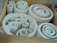 聚四氟乙烯墊片制作工藝:1)原材料準備;配料:純F4制品,A級料四氟墊片,材料F4細樹脂,搗碎,四氟墊片,過篩2)模具準備:用酒精擦
