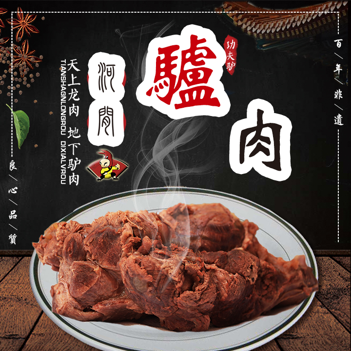 功夫驢卡通造型活潑、可愛,擺出中國功夫Pose的小驢,既彰顯出中國傳統(tǒng)文化又寓意功夫驢驢肉制作的精細繁雜,功夫驢驢肉的非凡功效。背景的折扇,體現了文化,傳統(tǒng)和高貴。剛勁瀟灑的毛筆字加上印章更是讓人品味。歷經幾百年的發(fā)展完善,從只為果腹的廉價"大火燒"到乾隆口中的"蛤蟆吞蜜"一直發(fā)展到如今擁有工業(yè)化流程,標準化操作的現代化股份公司。功夫驢視質量如生命,從驢源的選擇、火燒加工、出品的時間,都設置了規(guī)范流程,確保了品質的安全和統(tǒng)一。